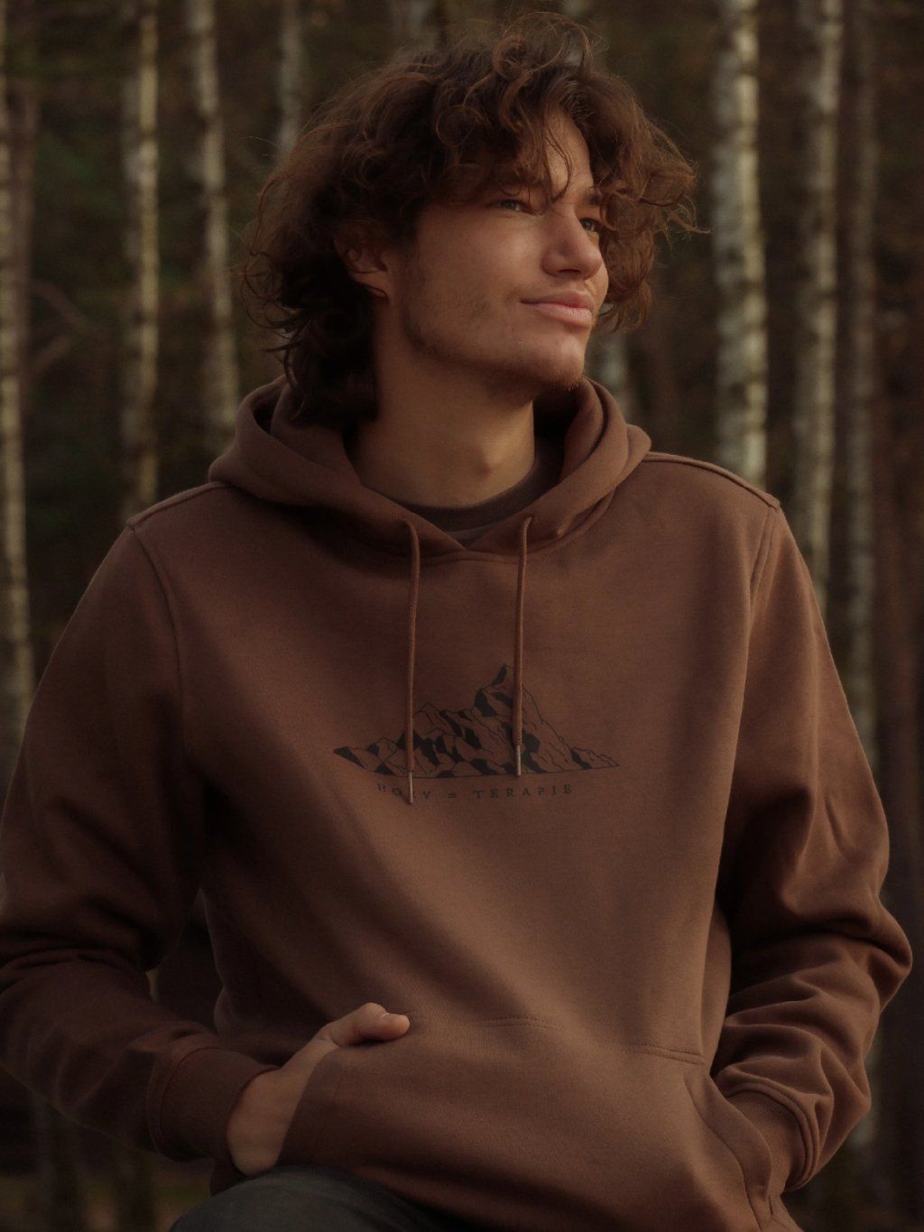 Terapie? Stačí hory. Pohodlná hnědá pánská mikina s kapucí, ideální na běžné dny i víkendové výlety. Měkký materiál a čistý střih z ní dělají univerzální základ šatníku.